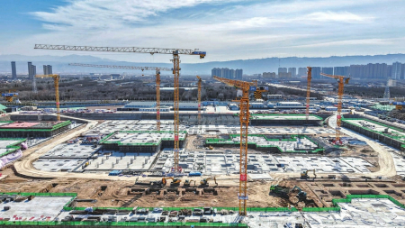 2月7日,運城市人民醫(yī)院建設(shè)項目(一期)工地,建筑工人投入緊張的施工中。據(jù)悉,該項目是山西省重點項目,建成后將有助于實現(xiàn)優(yōu)質(zhì)醫(yī)療資源下沉。新春伊始,施工單位搶抓建設(shè)進度,爭取早日建成投用。