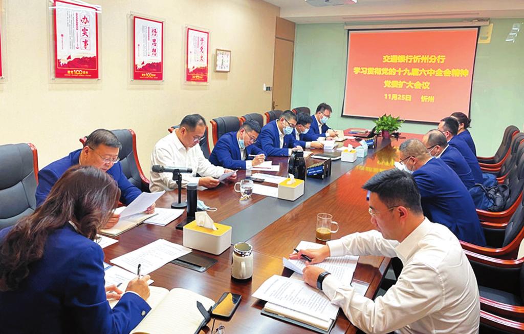 11月25日,交通銀行忻州分行召開黨委擴(kuò)大會(huì)議,傳達(dá)學(xué)習(xí)貫徹黨的十九屆六中全會(huì)精神,全會(huì)精神在交行忻州分行引起熱烈反響,廣大干部員工迅速掀起學(xué)習(xí)貫徹全會(huì)精神熱潮。
