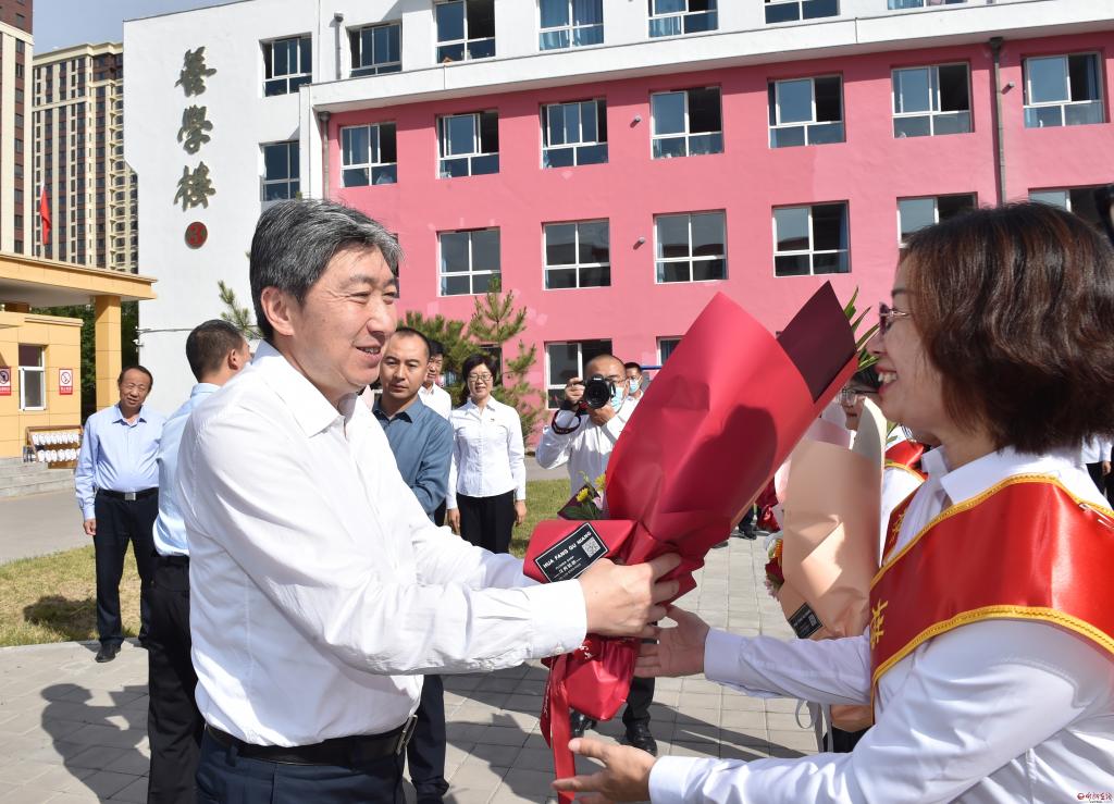 每到一處,朱曉東都與教師們深入交流,了解學(xué)校建設(shè)發(fā)展情況,關(guān)切詢問他們的工作生活情況,感謝他們?yōu)槲沂薪逃聵I(yè)發(fā)展作出的貢獻(xiàn),并為優(yōu)秀教師代表送上了鮮花,祝他們節(jié)日快樂。朱曉東指出,新一屆省委、省政府作出構(gòu)建“一群兩區(qū)三圈”城鄉(xiāng)區(qū)域發(fā)展新格局的重大戰(zhàn)略部署,明確提出“強勢打造太忻一體化經(jīng)濟(jì)區(qū)北引擎,引領(lǐng)帶動忻州與太原、雄安新區(qū)相向發(fā)展,打造我省融入京津冀和服務(wù)雄安新區(qū)的重要走廊”,賦予忻州“建設(shè)開放發(fā)展前沿城市”的戰(zhàn)略定位,忻州發(fā)展迎來了前所未有、千載難逢的重大機(jī)遇。不論是太忻一體化經(jīng)濟(jì)區(qū)建設(shè),還是建設(shè)開放發(fā)展前沿城市,都離不開人才的支撐。希望廣大教育工作者身在學(xué)校、心系全局,秉持“負(fù)責(zé)任、動腦筋、講良心”的工作要求,潛心教學(xué)鉆研、立德樹人,以更加飽滿的熱情投身教育事業(yè),為忻州經(jīng)濟(jì)社會發(fā)展培養(yǎng)更多的優(yōu)秀人才。