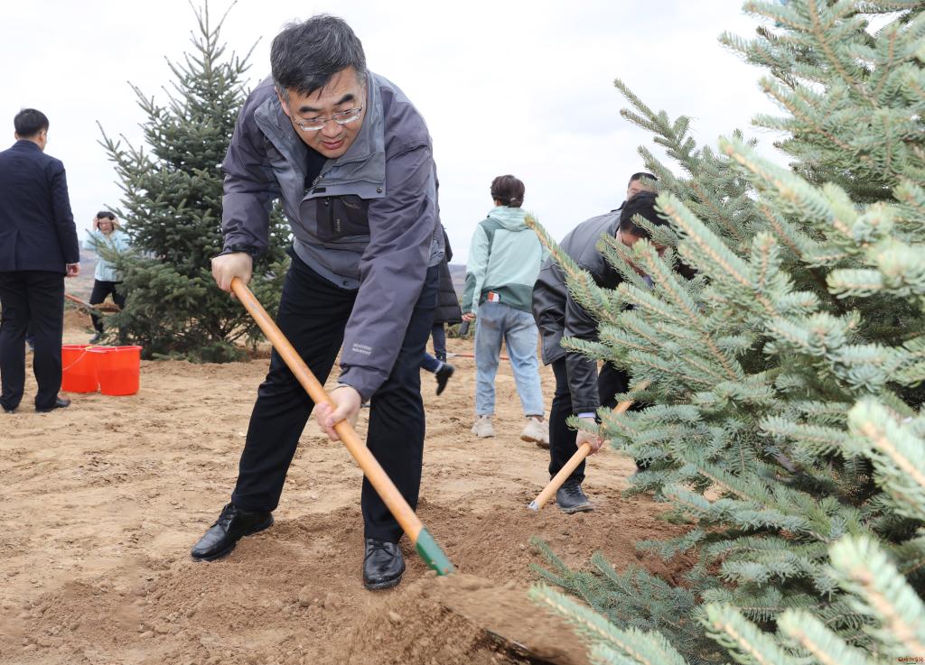 朱曉東指出,國土綠化,功在當代、利在千秋。開展大規(guī)模國土綠化行動,是貫徹落實習近平生態(tài)文明思想的重要實踐,是忻州牢記領(lǐng)袖囑托、保護黃河安瀾、筑牢環(huán)京津冀生態(tài)屏障的重要抓手。全市上下要把抓好生態(tài)文明建設(shè)作為堅決捍衛(wèi)“兩個確立”的具體行動,增強“四個意識”、堅定“四個自信”、做到“兩個維護”,站在筑牢國家生態(tài)安全屏障的戰(zhàn)略高度,站在實現(xiàn)忻州高質(zhì)量永續(xù)發(fā)展的高度,深刻認識開展國土綠化行動和全民義務(wù)植樹的極端重要性,堅決落實好市委、市政府的部署安排。朱曉東說,忻州作為黃河入晉第一市,作為汾河、桑干河、滹沱河“三河之源”,作為華北平原西部生態(tài)屏障,扛牢生態(tài)建設(shè)使命,必須謀在先干得實。要牢固樹立生態(tài)文明觀,準確把握生態(tài)與經(jīng)濟、生態(tài)與社會、全局與局部、當前與長遠的關(guān)系,嚴格落實忻州“兩屏三區(qū)三帶”建設(shè)規(guī)劃,統(tǒng)籌山水林田湖草沙綜合治理,精準謀劃、精細布局,堅持造管并重、造改并行、造封結(jié)合,確保在遵循規(guī)律的基礎(chǔ)上因地制宜,不斷擴大林地面積,不斷提高森林質(zhì)量,持續(xù)提升生態(tài)系統(tǒng)穩(wěn)定性,努力探索出務(wù)實管用的忻州綠化路徑。要圍繞國家重點區(qū)域重大生態(tài)修復(fù)和保護工程“雙重”項目、省級黃河流域生態(tài)防護林屏障、環(huán)京津冀生態(tài)安全屏障等造林綠化重點工程,積極爭取更多項目落地忻州。偏關(guān)、河曲、保德、五寨4縣要統(tǒng)籌造林綠化和荒漠化治理,科學精準推進人造林、退化林修復(fù)、100個重點村莊高標準綠化美化等項目實施,著力打造集晉西北整流域綜合治理、片帶狀生態(tài)防護、節(jié)點景觀綠化為一體的荒漠化典型示范工程,為黃河流域生態(tài)保護修復(fù)提供可復(fù)制可借鑒的經(jīng)驗。要深化全民履“植”,繼續(xù)深化全民植樹成效,創(chuàng)新義務(wù)植樹形式,提高公民義務(wù)植樹參與率,讓愛綠植綠護綠成為群眾的自覺追求,讓綠水青山成為忻州的“幸福靠山”。要完善管護體系,把營造林數(shù)量、質(zhì)量“雙增”的目標擺在首位,創(chuàng)新管護方式,全面落實林長制,做好森林防火工作,加大對亂砍濫伐、非法開墾等破壞造林綠化成果違法行為的處置力度,真正管在實處、管在關(guān)鍵。朱曉東強調(diào),做好國土綠化工作關(guān)鍵在落實。市發(fā)改、財政、自然資源(林業(yè))、住建、交通運輸、農(nóng)業(yè)、水利等主要職能部門,要各司其職、密切配合,協(xié)同推進城市、礦山、道路、村鎮(zhèn)、水域、山地等國土綠化工作。各縣(市、區(qū))一把手要親自抓、重點抓、具體抓,樹立正確的政績觀,主政一方、造福一方,為當?shù)刈訉O后代建好水庫、錢庫、糧庫、碳庫。要開展身邊增綠、城鄉(xiāng)增景行動,既增大“綠”,也抓小“綠”、微“綠”,既造底色,也造景色、美色,真正把國土綠化同高質(zhì)量發(fā)展大局結(jié)合起來,為美麗忻州、品質(zhì)忻州、幸福忻州貢獻更多力量。