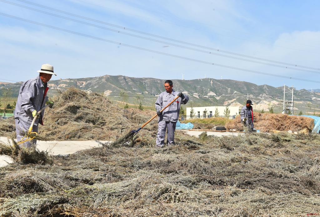 在山西康茂高原生物科技股份有限公司觀摩檢查高原艾草加工車間項目建設情況。馮曉磊 攝
