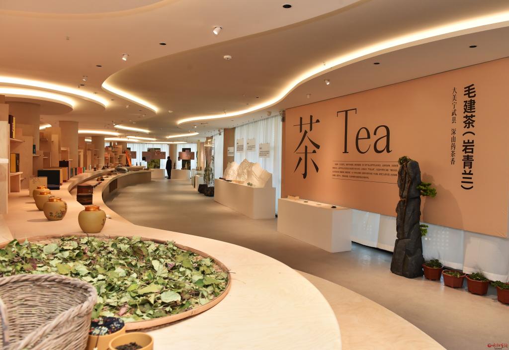 在農(nóng)業(yè)特優(yōu)館觀摩檢查藥茶專業(yè)鎮(zhèn)系列產(chǎn)品情況。馮曉磊 攝
