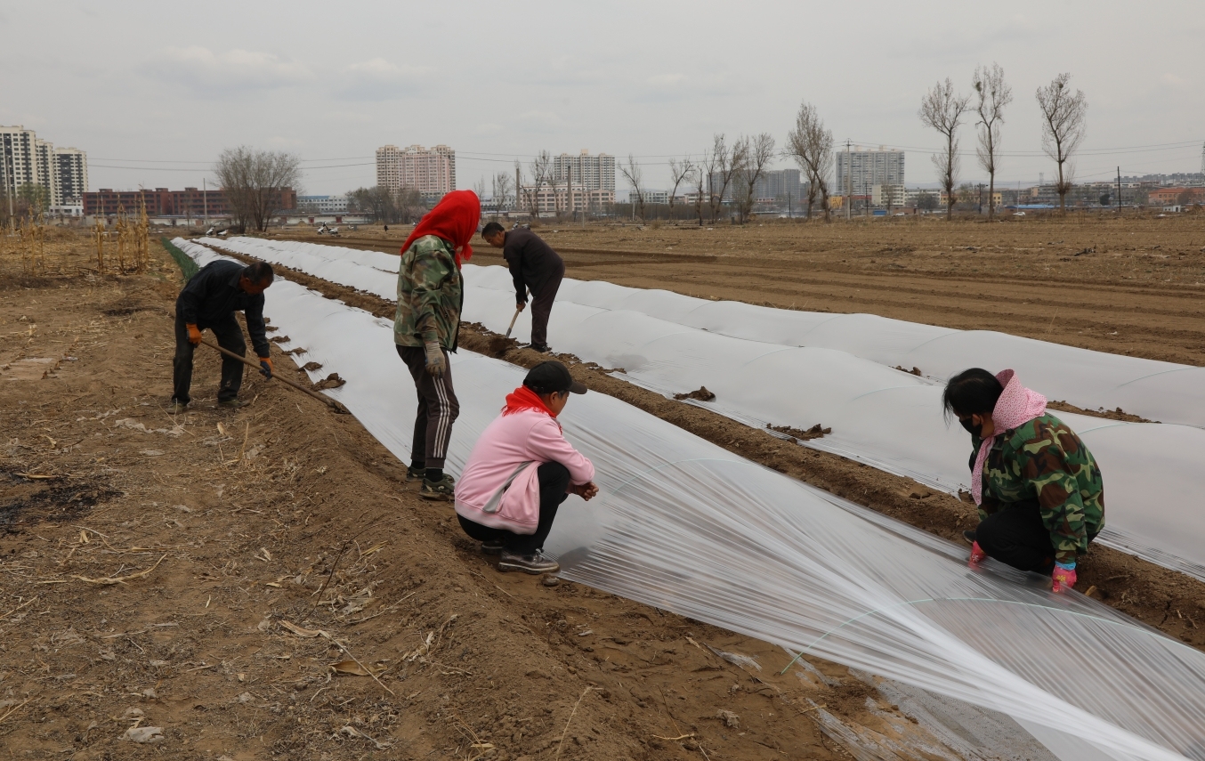 河曲縣西口鎮(zhèn)南園村村民正在蓋膜