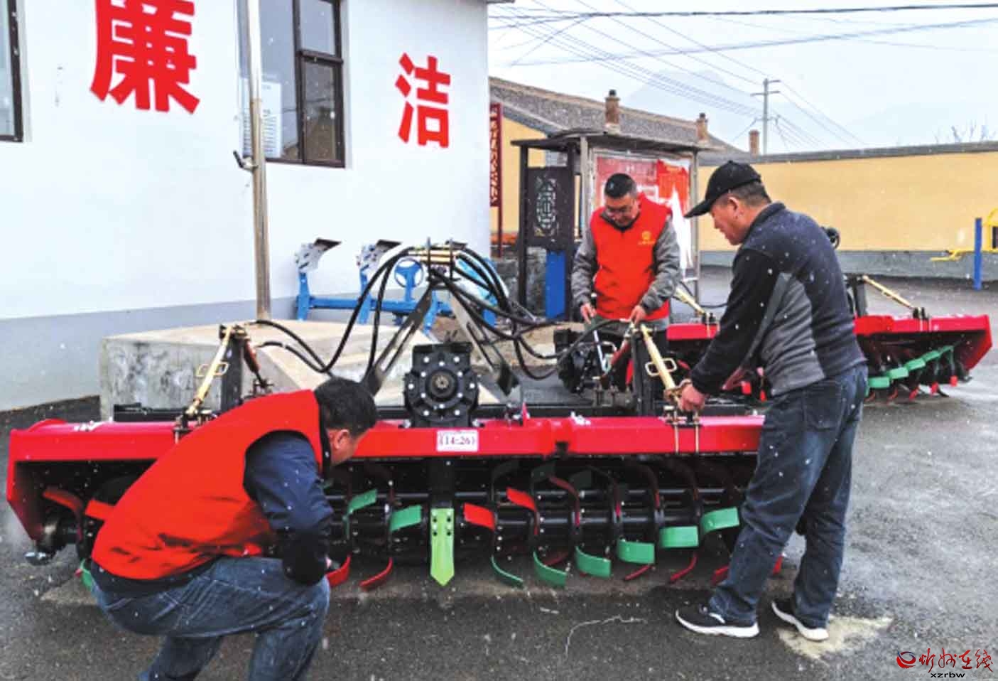 工作隊(duì)員與農(nóng)機(jī)技師一起仔細(xì)檢查旋耕機(jī)等設(shè)備的零部件、傳動(dòng)系統(tǒng)及液壓裝置,排查隱患,調(diào)試機(jī)械性能,確保農(nóng)機(jī)以最佳狀態(tài)投入春耕。隊(duì)員們還向農(nóng)戶講解農(nóng)機(jī)日常保養(yǎng)知識(shí),提升村民科學(xué)使用農(nóng)機(jī)的能力。(曾 陽(yáng) 攝)