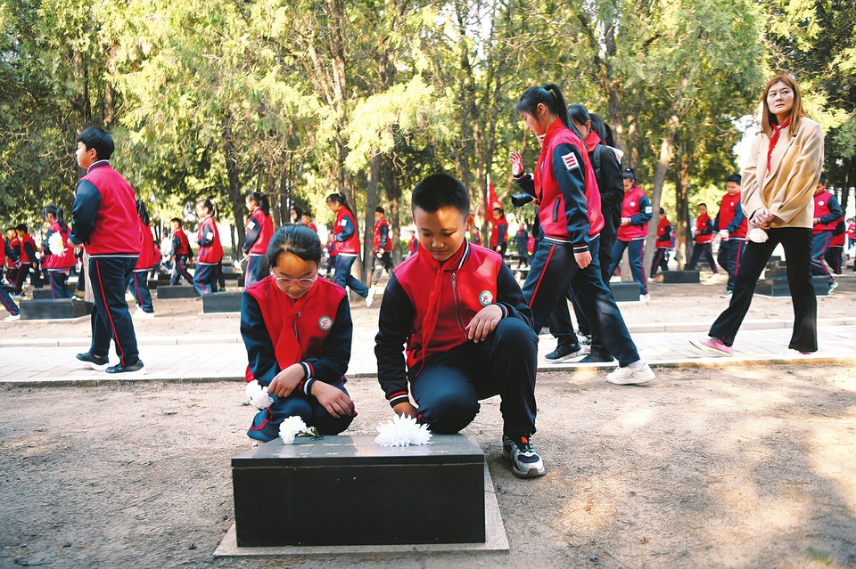 3月30日,省城迎澤區(qū)雙塔南巷小學(xué)組織學(xué)校師生前往太原市雙塔革命烈士陵園開展清明祭掃活動(dòng),深切緬懷革命先烈。本報(bào)記者王瑞瑞攝