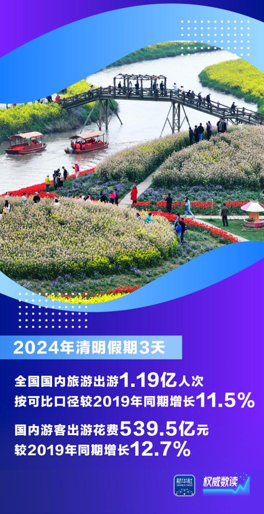 文化和旅游部4月6日公布2024年清明節(jié)假期文化和旅游市場情況。數(shù)據(jù)顯示,今年清明節(jié)假期,人們出游熱情持續(xù)高漲,“民俗文化”和“踏青賞花”引領(lǐng)假日別樣風景。