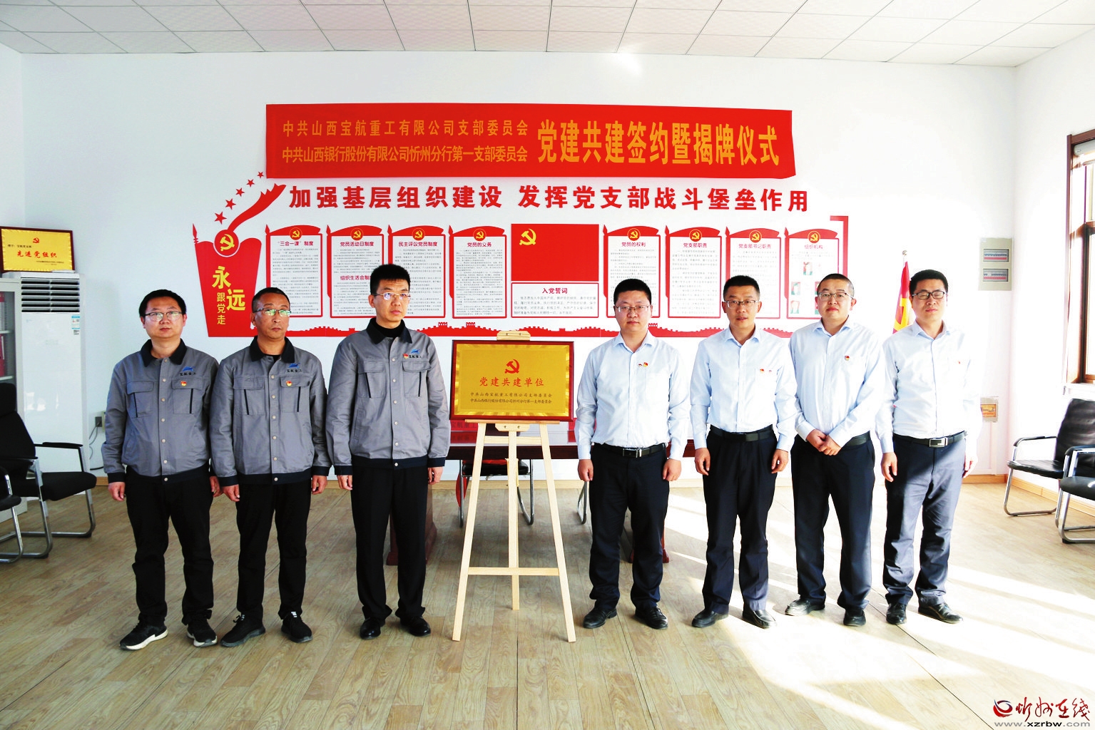 為充分發(fā)揮黨建引領(lǐng)作用和黨建共建促進(jìn)作用,努力構(gòu)建“資源共享、業(yè)務(wù)互促、共建共贏”的黨建工作新格局,近日,山西銀行忻州分行第一黨支部與山西寶航重工有限公司舉行黨建共建簽約暨揭牌儀式。