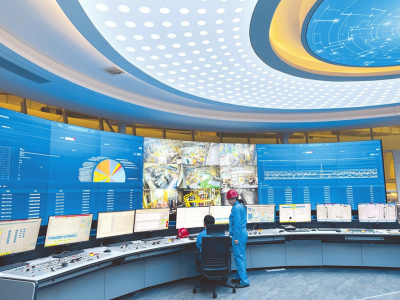 太鋼精密帶鋼公司智慧化集中控制中心,屏幕上實(shí)時(shí)顯示車間的能源消耗和安全生產(chǎn)情況。本報(bào)記者李學(xué)林?jǐn)z