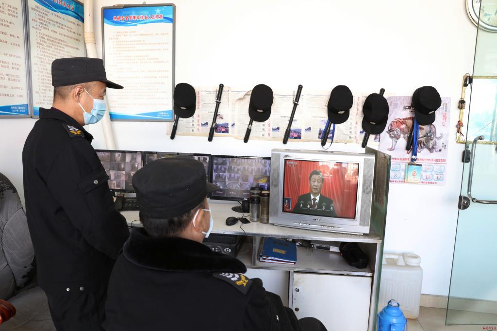 忻州市園林服務(wù)中心組織收看。范濤 攝