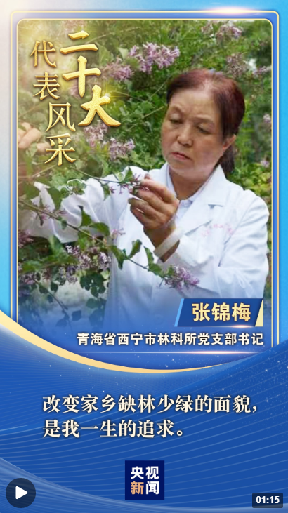 “二十大代表風(fēng)采”一起來認(rèn)識(shí)青海省西寧市林科所黨支部書記張錦梅。
