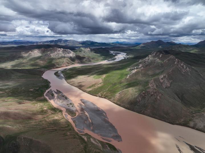 這是2022年7月21日在長(zhǎng)江源地區(qū)拍攝的河道。新華社記者張龍 攝