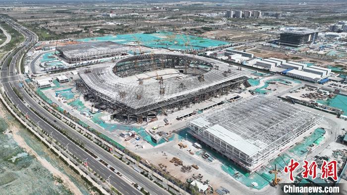 資料圖為6月8日,航拍雄安體育中心。(無人機照片)中新社記者 韓冰 攝