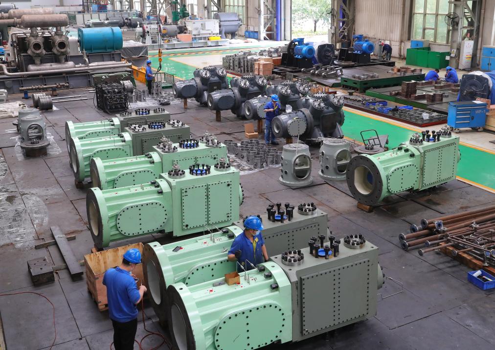 在沈鼓集團,工人在車間工作。新華社記者楊青 攝