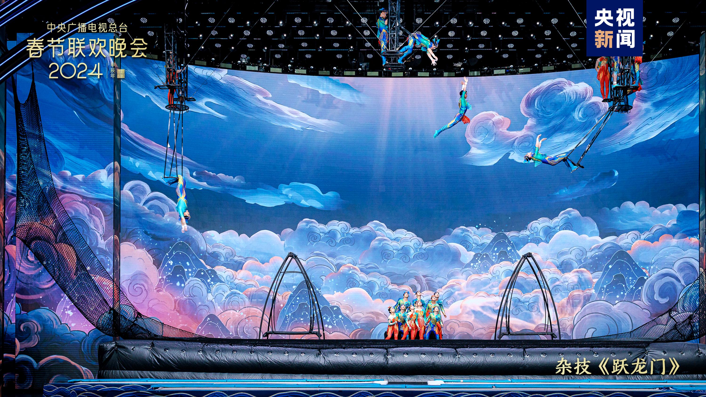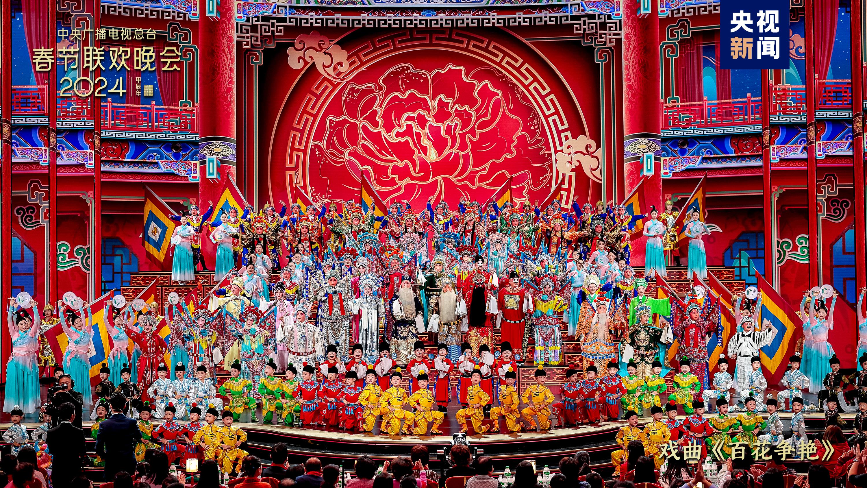 戲曲節(jié)目《百花爭艷》中,老少中青群英會(huì),演繹百萬金戈鐵馬、千年戀愛傳奇,國家級(jí)非物質(zhì)文化遺產(chǎn)潮劇首次在總臺(tái)春晚舞臺(tái)綻放華彩。雜技《躍龍門》結(jié)合競技體育項(xiàng)目“蹦床”和雜技“浪橋飛人”,表現(xiàn)出奮勇向前、更上層樓的干勁闖勁。陜西西安分會(huì)場全民齊誦詩詞歌賦,恢宏大氣的《山河詩長安》令人詩情澎湃、暢懷無限;多民族載歌載舞、共賀新春,新疆喀什分會(huì)場的《舞樂新疆》節(jié)奏歡快氣氛熱烈,展現(xiàn)石榴籽一樣緊緊抱在一起的各民族一家親。