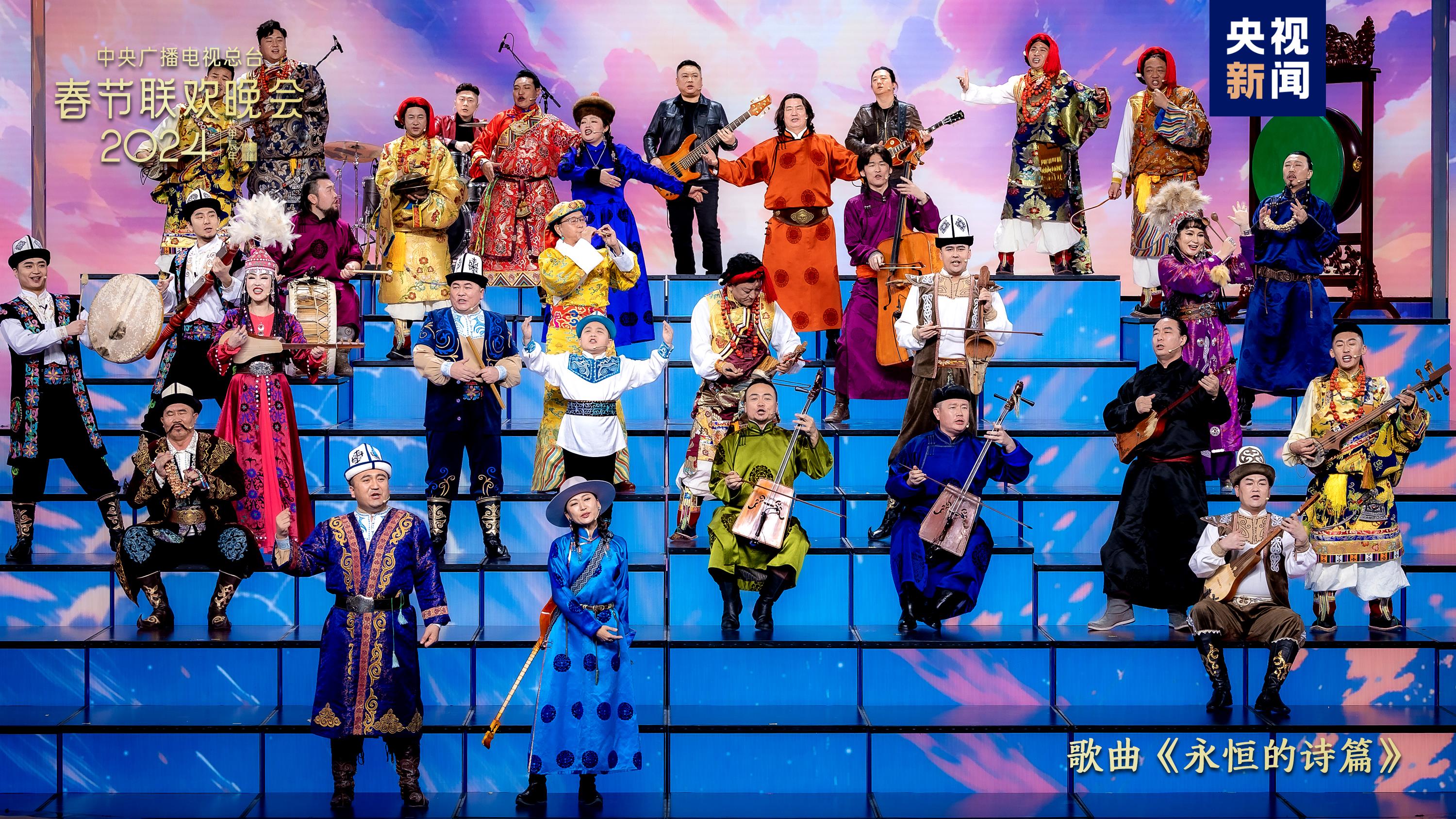 同根同源、同心同愿。歌曲《禮序》中,古巨基、蘇有朋、宋佳、麥嘉欣與來自海峽兩岸暨香港、澳門的小朋友們通過“禮”這一中華民族共通的文化符號(hào),唱出攜手同心、共赴團(tuán)圓的美好期許?!队篮愕脑娖穫鞒聽柨俗巫?、蒙古族、藏族的民族史詩,蒼勁有力,響徹廣袤大地,書寫遼闊土地上的生生不息。