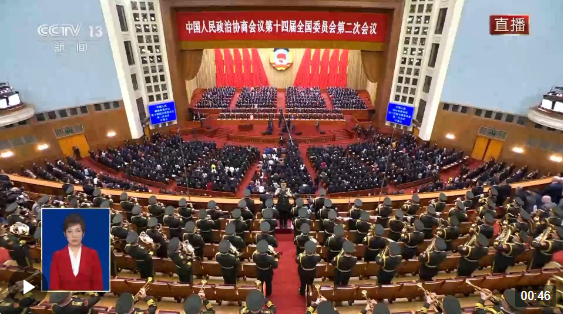 獨(dú)家視頻丨全國政協(xié)十四屆二次會議開幕 全場高唱國歌