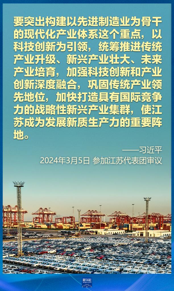 5日下午,習(xí)近平在參加他所在的十四屆全國人大二次會(huì)議江蘇代表團(tuán)審議時(shí)強(qiáng)調(diào),因地制宜發(fā)展新質(zhì)生產(chǎn)力。