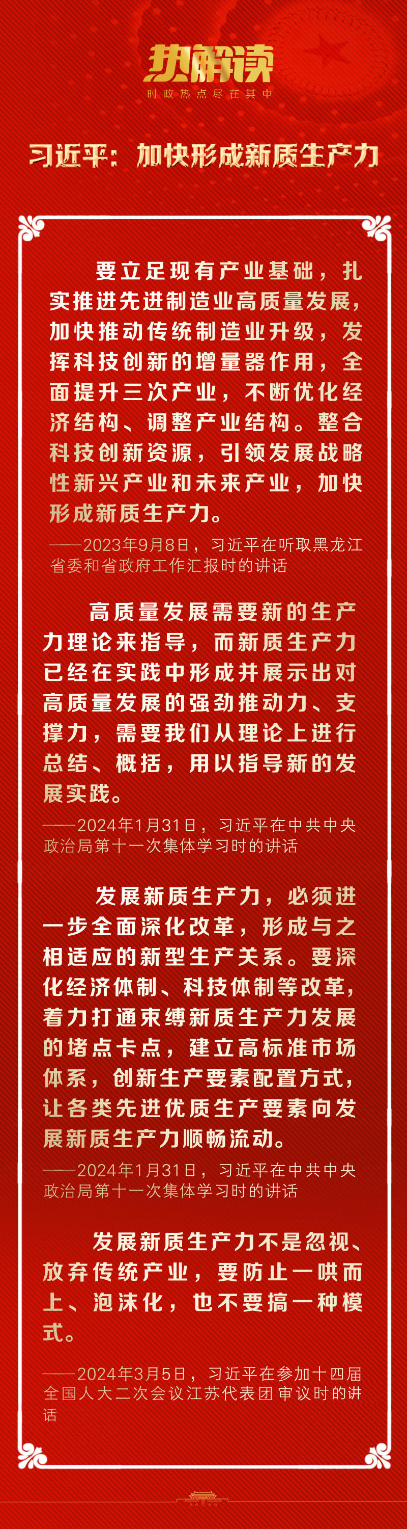 從2023年底召開的中央經(jīng)濟工作會議要求發(fā)展新質(zhì)生產(chǎn)力,到今年中央政治局首次集體學習時聚焦“新質(zhì)生產(chǎn)力”,再到今年政府工作報告將加快發(fā)展新質(zhì)生產(chǎn)力列為2024年十大工作任務之首,一系列重要安排部署釋放出鮮明信號,即發(fā)展新質(zhì)生產(chǎn)力重要且迫切。