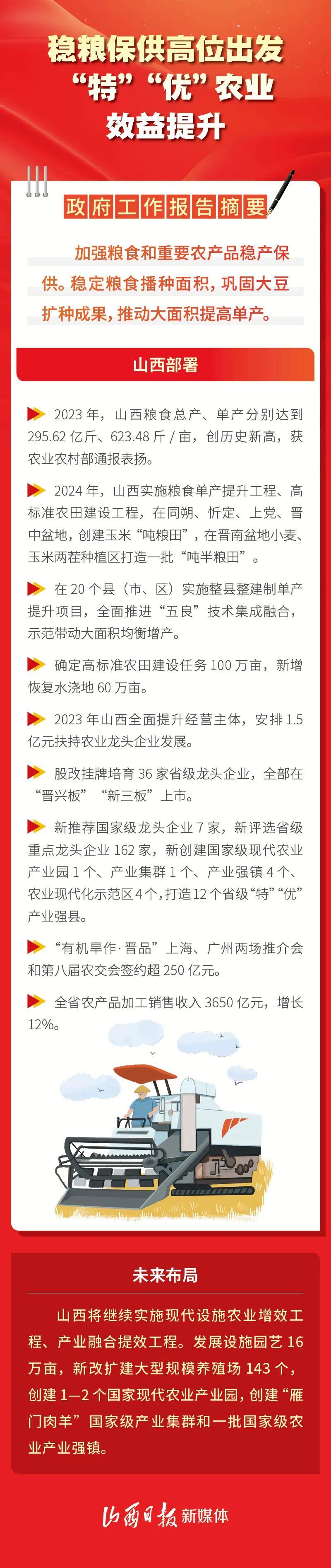 今年,山西將圍繞“穩(wěn)糧保供、學(xué)習(xí)運用‘千萬工程’經(jīng)驗、鞏固拓展脫貧攻堅成果”三件大事,實施九大工程,加快推進農(nóng)業(yè)農(nóng)村現(xiàn)代化,扎實推進鄉(xiāng)村全面振興。