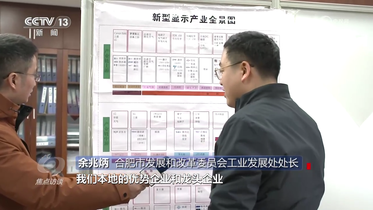 自2015年來,康寧公司就與安徽省不斷深化合作,累計(jì)在合肥、蚌埠投資項(xiàng)目超過10個(gè),涉及顯示、汽車應(yīng)用等產(chǎn)業(yè),總額超過30億美元。作為一家擁有百年歷史,專注于玻璃和陶瓷技術(shù)以及光學(xué)物理的跨國公司,創(chuàng)新研發(fā)是康寧一直以來的優(yōu)勢,但如果沒有產(chǎn)業(yè)鏈企業(yè)提供更多的應(yīng)用場景,它們的創(chuàng)新成果也無法有效落地。 對于康寧公司提出的需求,合肥市發(fā)改委工業(yè)發(fā)展處處長余兆炳很快就能找到解決的思路,這源于合肥市在推進(jìn)新型產(chǎn)業(yè)鏈體系過程中所形成的一套成熟經(jīng)驗(yàn),對于產(chǎn)業(yè)鏈上下游企業(yè)的發(fā)展動態(tài),他們有著全面的掌握。 合肥市發(fā)展和改革委員會工業(yè)發(fā)展處處長余兆炳:“新型顯示產(chǎn)業(yè)全景圖上面顯示了合肥市發(fā)展新型顯示的產(chǎn)業(yè)鏈的上游、中游、下游本地的優(yōu)勢企業(yè)和龍頭企業(yè),有這個(gè)全景圖,我們對標(biāo)作戰(zhàn)、掛圖作戰(zhàn)非??梢暬鲬?zhàn)?!?/p>