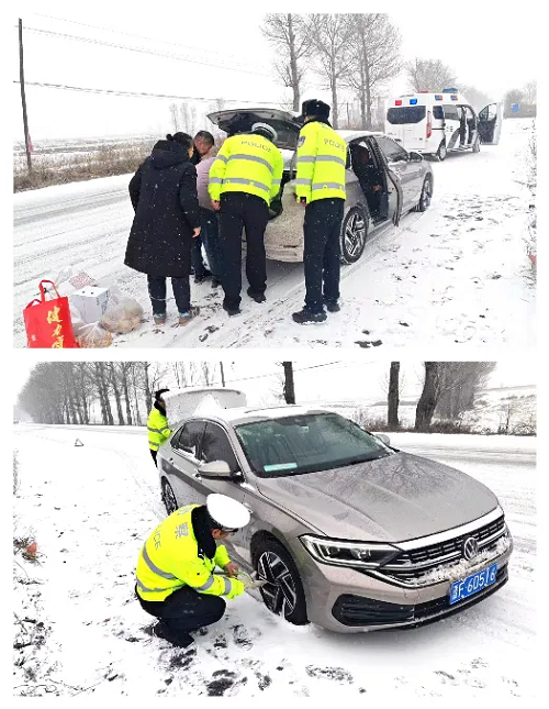 寒風(fēng)凜冽,大雪紛飛,你們卻起早貪黑,從未有過(guò)絲毫懈怠。每一個(gè)清晨,當(dāng)人們還在溫暖的被窩中時(shí),你們已奔赴道路,指揮交通;每一個(gè)深夜,在萬(wàn)家燈火映照下,你們的身影仍在街頭佇立。為了讓返鄉(xiāng)出行的人們安全回家過(guò)年,你們?nèi)檐?chē)輛保駕護(hù)航。遇到受困的車(chē)輛與人員,你們毫不猶豫地伸出援手,推車(chē)、除雪、提供應(yīng)急物資,用真誠(chéng)與過(guò)硬作風(fēng),書(shū)寫(xiě)著警民和諧的動(dòng)人篇章。