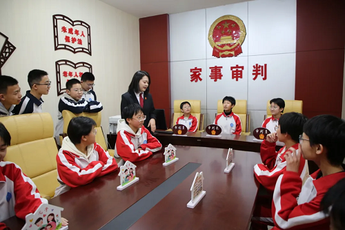 在法院講解員的帶領(lǐng)下,學(xué)生們依次參觀了訴訟服務(wù)中心、家事文化長廊、陽光大廳、科技法庭、院史陳列室等場所,認(rèn)真觀看了中院全面建設(shè)專題片和中院干警自編自導(dǎo)自演的預(yù)防未成年人犯罪題材法治微電影《你依然是天使》,對法院的職能作用、機(jī)構(gòu)設(shè)置、歷史文化、信息化建設(shè)有了更為深刻的認(rèn)識。