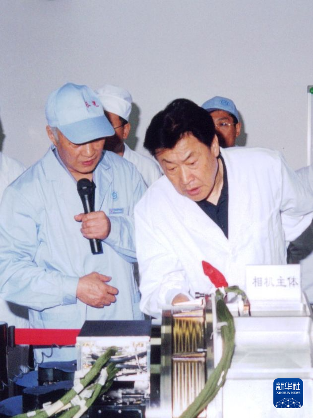 王永志(右二)深入載人航天工程研制一線。新華社發(fā)(資料照片)