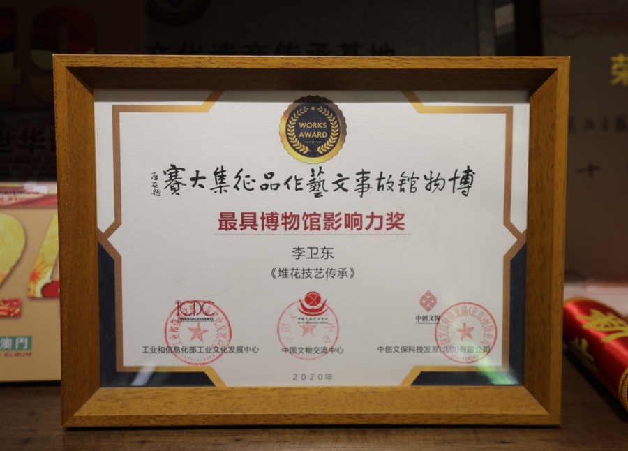 隨著時代的變遷,堆花藝術(shù)也面臨著挑戰(zhàn)。幸運的是,總有一群人堅守著這份傳承,李金魁、李銘山、李衛(wèi)東等自盛李記的后代,他們不畏艱難,矢志不渝,終于在新時代讓堆花藝術(shù)重?zé)ㄉ鷻C。
