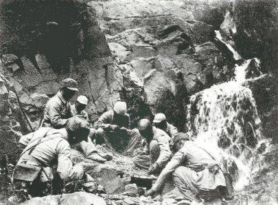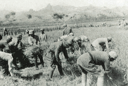 八路軍某部和群眾一起采集樹(shù)葉充饑,堅(jiān)持抗戰(zhàn)。
