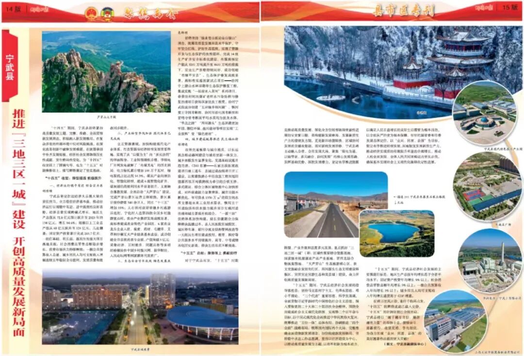 對于寧武縣而言,“十五五”時期是推動高質(zhì)量發(fā)展、深化全方位轉(zhuǎn)型取得突破性進(jìn)展的寶貴窗口期,是構(gòu)建新發(fā)展格局、發(fā)展新質(zhì)生產(chǎn)力的接續(xù)發(fā)力期,更是新舊動能轉(zhuǎn)換、區(qū)域協(xié)同發(fā)展的關(guān)鍵攻堅(jiān)期。面對新的發(fā)展形勢,寧武縣將主動融入全省、全市發(fā)展大局,聚焦“煤電為基、以旅帶農(nóng)、多元融合、協(xié)同發(fā)展”的核心發(fā)展思路,發(fā)揮基礎(chǔ)優(yōu)勢、深挖發(fā)展?jié)摿Γ瑘?jiān)定有序推進(jìn)能源轉(zhuǎn)型、產(chǎn)業(yè)升級和適度多元發(fā)展,重點(diǎn)抓好“三地三區(qū)一城”(即:區(qū)域性重要綜合能源基地、國家級有機(jī)健康農(nóng)產(chǎn)品產(chǎn)業(yè)基地、晉西北綜合物流集散地、“大蘆芽山”生態(tài)旅游核心區(qū)、農(nóng)文交旅融合發(fā)展先行區(qū)、兩河源頭生態(tài)文明建設(shè)樣板區(qū)、宜居宜業(yè)宜游生態(tài)和美縣城)建設(shè),奮力開創(chuàng)高質(zhì)量發(fā)展新局面。